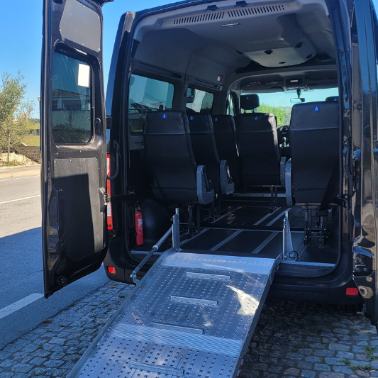 Dispomos de viaturas com rampa de acesso, sistemas de fixação e bloqueio de cadeiras de rodas, assegurando viagens estáveis, seguras e tranquilas.